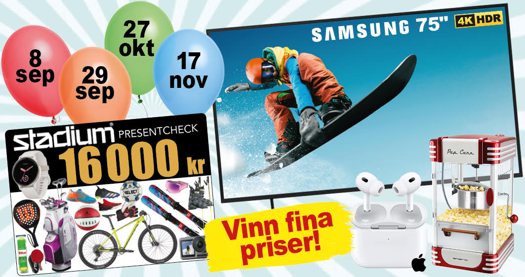 Var med och tävla om fina priser! Allt du behöver göra är att logga in på Mina sidor och svara på en fråga. Under tre månader tävlar vi ut 4 st fina vinster! På ballongerna ovan ser du vilka datum vi utser vinnaren. Ju snabbare du registrerar dig desto större chans att vinna, då du kan vara med i flera dragningar.